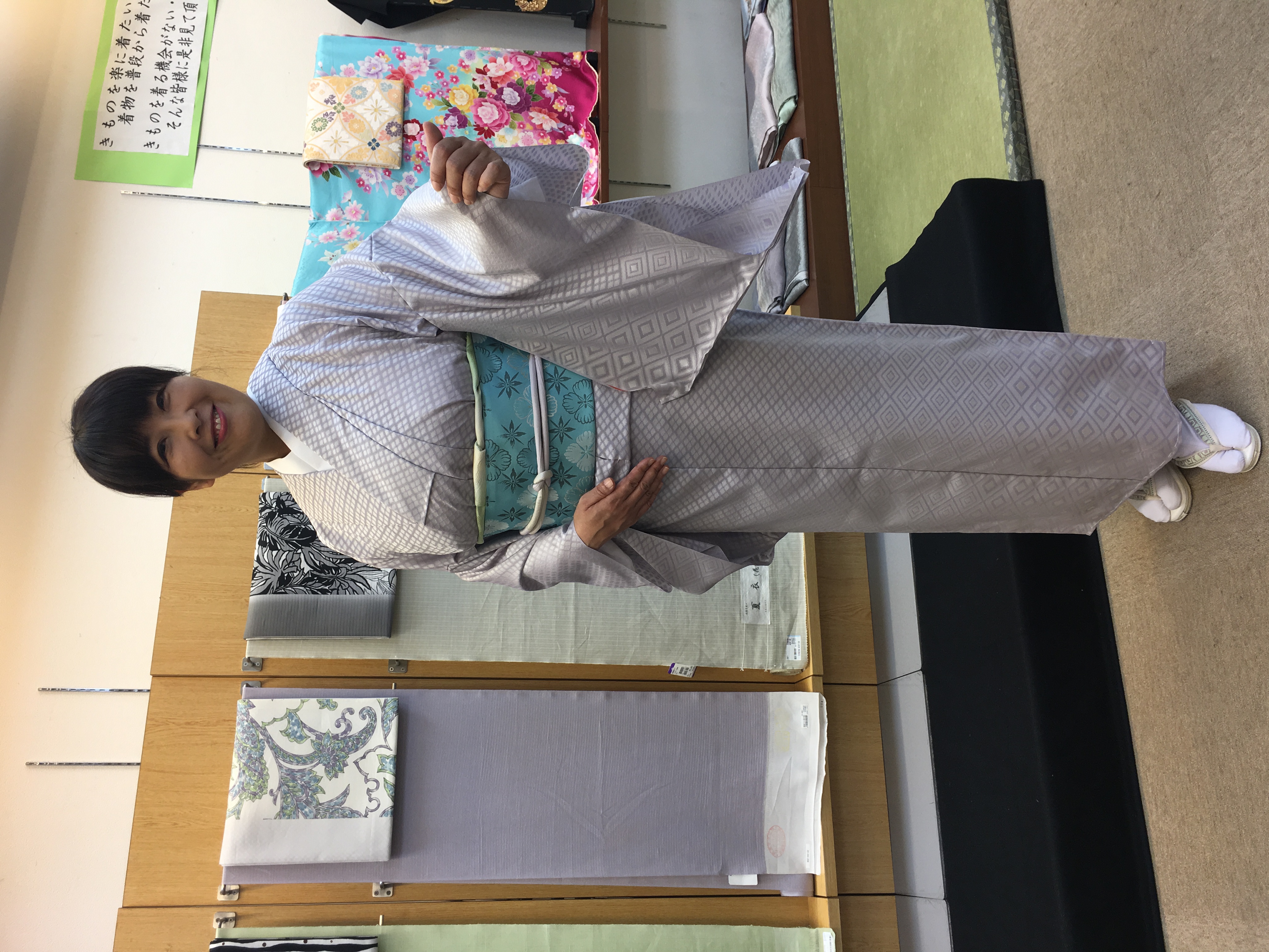 - 人生初・着物(実は中に洋服を着たままなのです!)